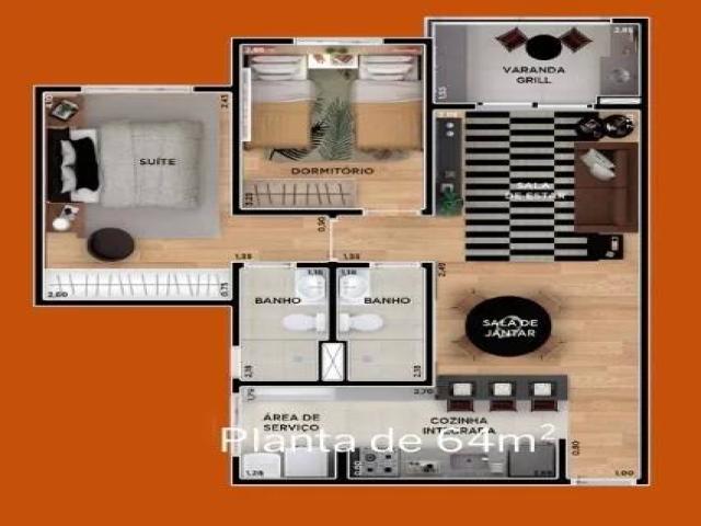 Possui 02 dormitórios sendo 01 suíte, sala para 02 ambientes, varanda grill, cozinha estilo americana, banheiro, lavanderia e 01 vaga de garagem coberta.
