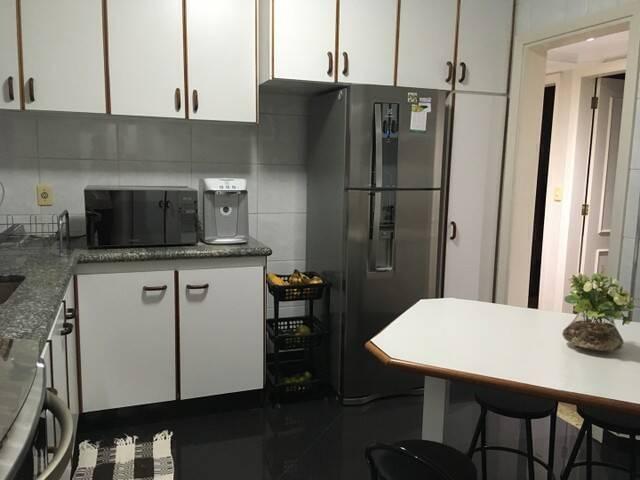 Excelente apartamento 117m² todo mobiliado, arejado, 8º andar, sol da manhã, 3 dormitórios sendo 1 suíte, todos os quartos e cozinha com armários planejados, sala ampla 2 ambientes com varanda, banheiro, lavabo, lavanderia e 2 vagas de garagem paralelas e cobertas.